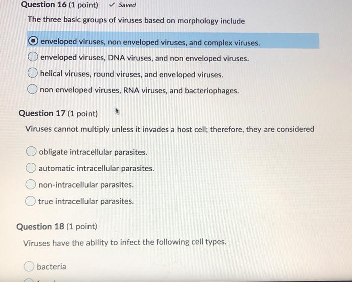 Solved Question 16 1 Point Saved The Three Basic Groups Of Chegg Com